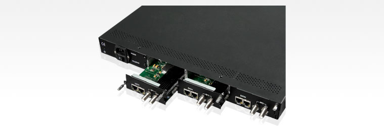 The RVG’s RQ-0863 is a new generation of modular & high density Edge QAM modulator. It supports up to 48 QAM channels in 1RU chassis by using three external pluggable 16 QAM modules, each of QAM modules supporting up to two Gigabit copper(RJ-45) or optical(SFP) interfaces according to different deployment environment of network. Moreover, the RQ-0863 supports 1+1 redundant & hot-swappable power supplies for high reliability and stability of system. Its pay-as-you-grow modular design, flexible configurations and licensing mechanism are making the unpar-alleled scalability, reliability and system performance to cable operators. The RQ-0863 adopts Web browser and SNMP management with remote monitoring and control that can greatly reduce management time and operating expenses (OPEX) of operators.